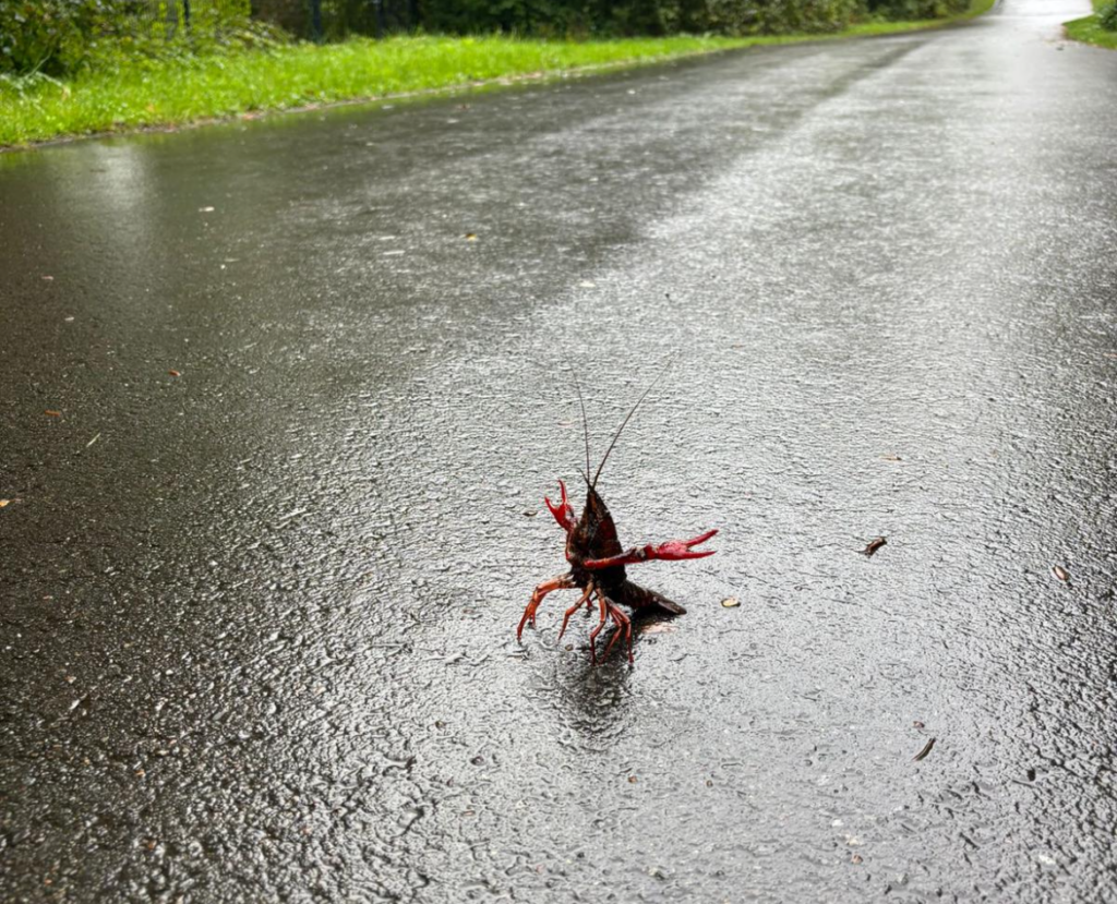 Ungewöhnlich, aber kein bearbeitetes Bild. Er kam auf einem Spaziergang einem Kollegen entgegen. Warum er so unterwegs war, wissen wir nicht, aber vielleicht hat jemand eine Idee. Dann bitte unter direktzunw@posteo.de melden.